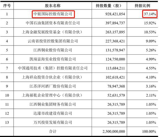 中银国际证券公司注册地上海,目前总股本25亿股。招股书披露,公司股权比较分散,公司无控股股东、无实际控制人。目前持有公司5%以上股份的股东包括中银国际控股、中油资本、金融发展基金、云投集团和江铜股份。