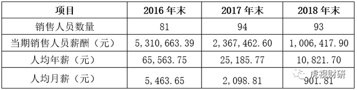 2017年和2018年人均薪酬分别为14.53万和21.66万,都不算低。那么它职工薪酬最神奇的地方在哪里?答案是销售人员的薪酬。