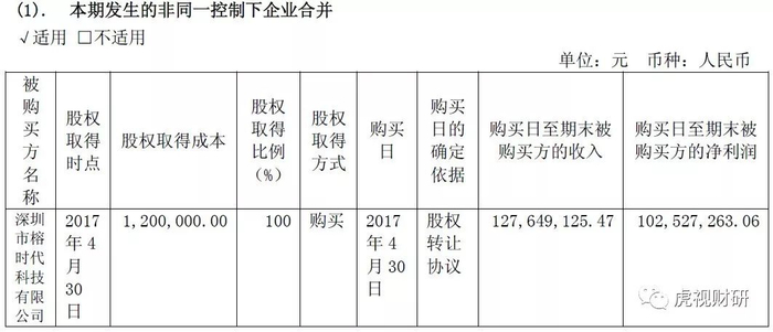 这家公司被收购之前的业绩无从考证,但是被易见股份收购之后,那业绩简直逆天,这家花了120万收购过来的公司,8个月时间就为易见股份贡献了净利润1.03亿!