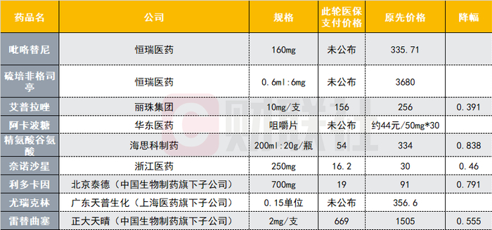 虽然恒瑞PD-1错失此次谈判机会,不过,公司2018年最新上市的的乳腺癌重磅新药马来酸吡咯替尼和长效升白药硫培非格司亭注射液(19K)均成功入围(此轮医保支付价格未公开)。另外,华东医药、丽珠集团等上市公司也均有产品成为新增的国家医保药品。