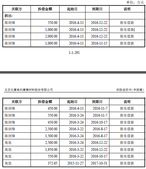 据披露,2016年度,公司股东陈剑锋、高昆分别累计向公司借款10,000万元、5,000万元,上述资金主要用于股东个人股票理财,上述股票理财资金已于2016年12月31日前完成规范清理。同时招股书披露,报告期内关联方资金往来状况如下: