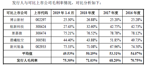 与此同时,报告期内公司毛利率均超过68%,远超过可比上市公司毛利率平均值,具体数值如下: