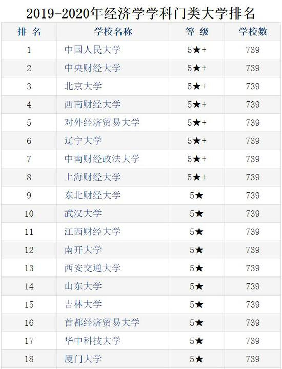 同时,中国科教网还对2019年-2020年经济学学科门类进行了排名 ,其中中国人大的经济学排第一,其次是央财,北大、西南财经、对外经济贸易大学的经济学学科。