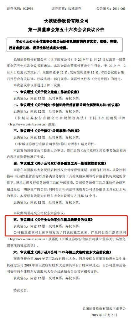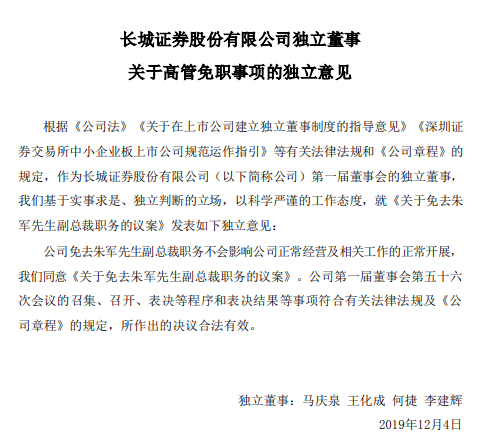 就在昨夜(2019年12月5日),长城证券发布一则高管免职公告,引发业内诸多猜测。