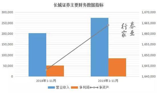 最新数据显示,2019年1-11月,长城证券营业收入为27.37亿元,同比增长35.03%;净利润为8.53亿元,同比增长67.51%;截至11月30日,公司净资产为166.40亿元,同比增长1.27%。