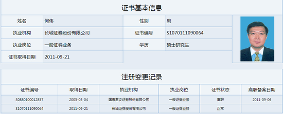 协会从业人员资料显示,何伟目前仍在长城证券,但没有更多公开信息。