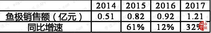 收购完成后,公司加大“鱼极”品牌系列产品的渠道拓展力度,向商超家庭消费端发力。鱼极品牌增长迅速,2017年销售额突破亿元大关,同比增长32%。