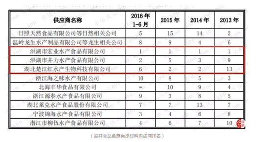安井食品近几年则扩大了淡水鱼糜的采购,招股书里披露的鱼糜原材料主要供应商有多家是淡水鱼糜生产商。2018年,安井食品还以0.80亿向上游收购了速冻淡水鱼糜厂商洪湖市新宏业食品有限公司19%股权。
