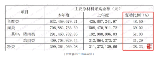 而安井食品,2018年为应对可能的原材料涨价,提前储备原材料,年末原材料同比增加94%。