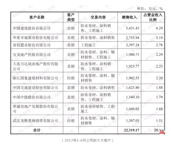 建筑企业客户方面,与中国建筑、中国中铁、中国铁建等大型建筑企业建立了长期合作关系。2014年-2017年上半年,中国建筑股份有限公司均位居科顺股份前五大客户。