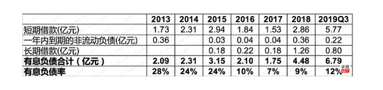 具体来看,科顺股份在2016年股权融资后,有息负债率大幅下降。2019年三季度末,有息负债6.79亿,占总资产比例为12%。