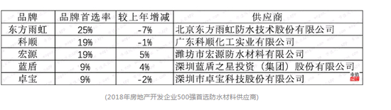 (2018年房地产开发企业500强首选防水材料供应商)