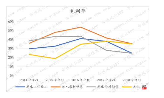 2018年,科顺股份毛利率31%,东方雨虹35%;净利率上,科顺股份6%,而东方雨虹11%。