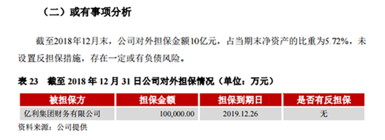 根据公开信息显示,上市公司为财务公司提供担保,担保额为10亿元,并未设置反担保措施,一旦财务公司陷入流动性困境,则上市公司存在一定的或有负债风险。