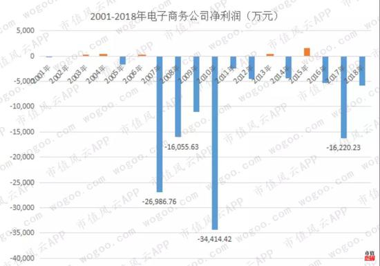 从上图不难看出,电子商务的巨额亏损主要集中在2007-2010年前后几年。2007年巨额亏损直接导致了上市公司在2008年5月被上交所暂停上市,而在2009年,也就是恢复上市的次年,再度创下3.44亿元的历史最高亏损记录。