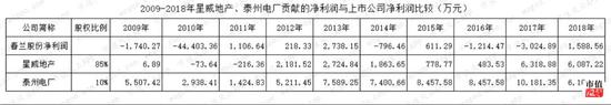 注:对星威地产的投资收益金额由当期实现的净利润乘以85%股权比例计算而得,对泰州电力的投资收益金额直接摘录上市公司年报披露的当期现金分红数据。