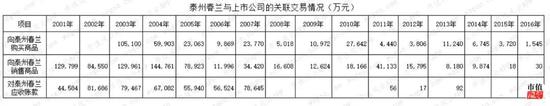 从上市公司披露的年报看,2003-2016年,上市公司均从泰州春兰购买商品或劳务,其中2003年、2004年、2005年、2007年、2009年、2010年、2013年的采购金额均超过1亿元。同时,上市公司又向泰州春兰销售商品(主要是空调),2001-2012年销售金额均超过1亿元,其中,2001-2007年期间,泰州春兰是上市公司空调销售的主要途径。