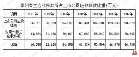 稍稍有一点令人不解的是,泰州春兰作为销售公司,替上市公司销售空调,但是,貌似结账积极性不是很高,长期拖欠上市公司巨额资金:2002-2007年期间拖欠货款均在五六亿以上,占当期应收账款比重80%以上。