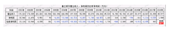 该公司在2001-2018年时间里累计亏损4.08亿元,位居春兰股份子公司的亏损亚军,但是亏损年度却超过电子商务公司,在18年里仅2年小幅盈利,其他年度均为亏损。
