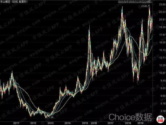 但就东山精密的股价走势来看,似乎只看到了故事的表面。此时,东山精密的股价应该算是处于历史较高位。
