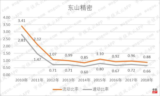 短期偿债能力来看,东山精密的流动比率和速动比率也是急速下滑。