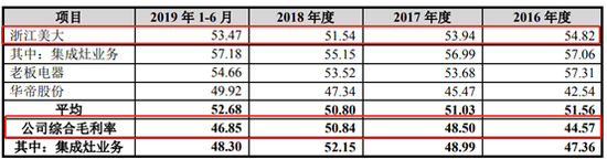 根据招股说明书,线上直营模式的毛利率在63%-67%之间(线下直营收入较小,忽略不计),而经销模式毛利率最高只有50.23%,使得帅丰电器的综合毛利率受到拖累,维持在50%左右。