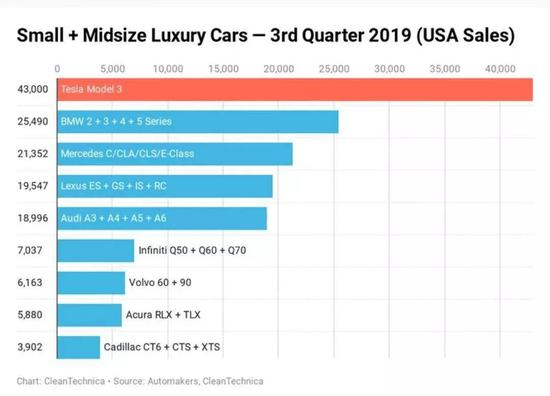 拿最近的美国第三季度的豪华车销量数据来看,可以轻松算出: