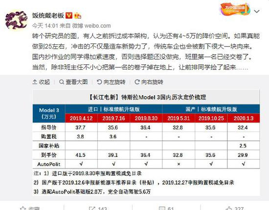 今年以来,特斯拉进行了多次降价,引用一下饭桶戴老板的微博