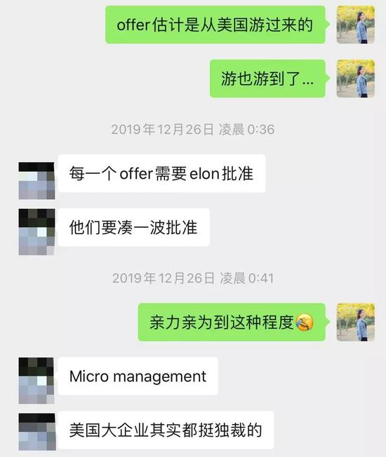 我一个之前在某著名车企工作的工程师朋友,她也去特斯拉面试了,她这个段位的人,中国需要面N轮,美国需要面试N轮,而最终还需要马斯克亲自批准offer。