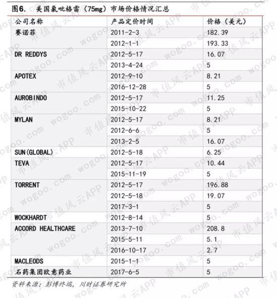 本来由于原研药专利过期后会涌现很多仿制药竞争,药品价格会在短期内悬崖式地下跌。根据川财证券的研报数据,美国氯吡格雷的市场价格就在2012年5月专利过期后一个月内从将近200美元/75mg下降到5美元/75mg,前后出现20多家仿制药企业来竞争。