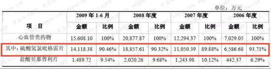 其中硫酸氢氯比雷格片(泰嘉)是心血管类药物的主打产品,占比超90%以上。
