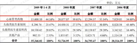 信立泰2009年9月于A股上市,上市前主要营收来自于心血管类药物和抗生素类药物,心血管类药物占到40%左右。