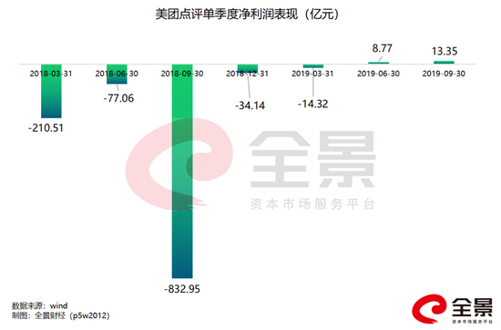 2019年第三季度,美团实现净利润13.35亿元,再度获得正向利润;
