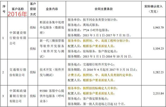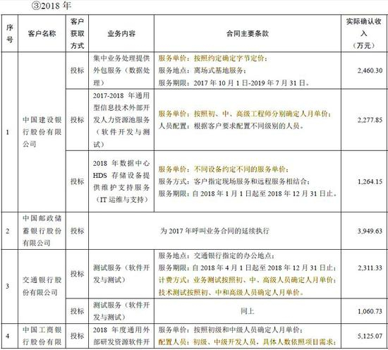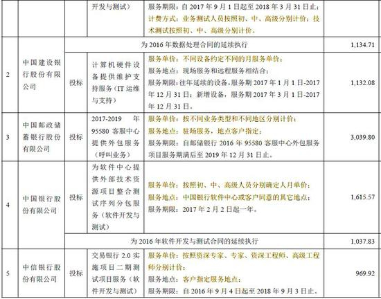 占比30-40%的“信息技术服务”收入,也被定位为外包服务收入,具体服务应该是银行的部分IT服务外包,另一项“业务流程外包”收入更是外包服务收入。