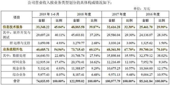 不言而喻,京北方对自己的核心定位是信息技术,因为公司名字中就是这个,还有一项业务是业务流程外包,招股说明书列示了两项业务的进一步收入构成: