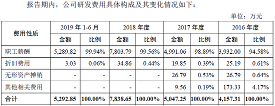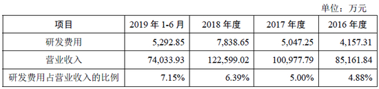 2016-2018年和2019年1-6月,京北方研发费用为4157.31万元、5047.25万元、7838.65万元和5292.85万元,占收入的比例也挺高。