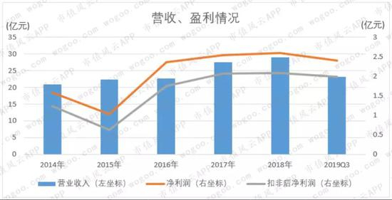 在最近几个财年里,惠达卫浴总营收以每年2%~20.69%的增幅缓慢增加,2016年以后工程渠道收入拉升总体业绩,2017年公司总营收突破25亿元,2018年增速放缓。