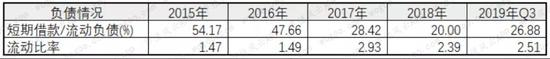 惠达卫浴的融资渠道较为单一,基本为银行短期借款,其负债端主要由流动负债构成。2017年上市后,有募集资金作后盾,惠达卫浴的短期借款规模降至5亿元以下,短期借款占流动负债比例随之波动下降。公司的流动比率也从2016年的1.49提高至2019年前三季度的2.51。