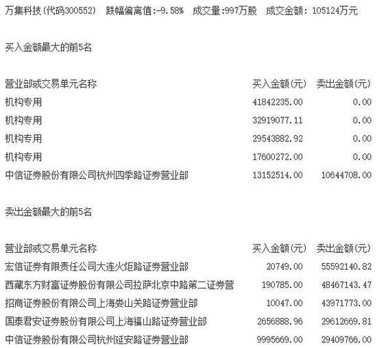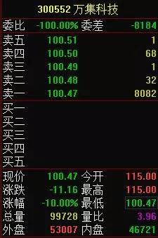 截至收市,万集科技股价报收100.47元,下跌10%,全天成交10.5亿元,换手率21.1%。而在跌停板上,还有80多万股等着出货,约合8000万资金。