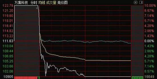 今日早盘集合竞价阶段,看多资金疯狂涌入,万集科技股价直接封上了涨停板。值得注意的是,涨停板价格在临近开盘时被大单砸开迅速回落,截至开盘时,开盘价已回落到115元,相比集合竞价阶段的涨停价122.79元,下跌了6.3%。