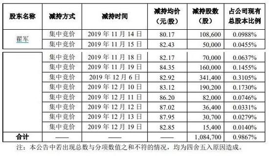 2019年12月25日,万集科技发布了公司控股股东、实际控制人股份减持计划实施完毕的公告,公司于近日收到翟军发来的《董事、监事、高级管理人员关于股份减持计划实施完毕的告知函》,截至本公告日,翟军的股份减持计划已实施完毕,期间累计减持108.47万股,减持价格为80.17元~87.95元之间。此次减持后,翟军持有股份5508.6万股,占公司总股本比例50.11%。