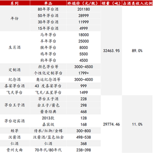 其中的“1”指茅台酒,包括飞天茅台与各种非标茅台,覆盖高端与超高端价格带;“33”指6个系列酒品牌,涵盖次高端到中端产品线