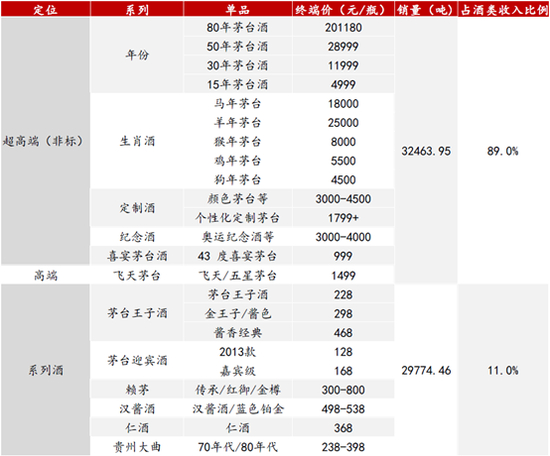 各档次产品满足了不同的需求。飞天茅台是主力产品,飞天之上的产品主要满足收藏需求,系列酒则满足不同的消费场景。