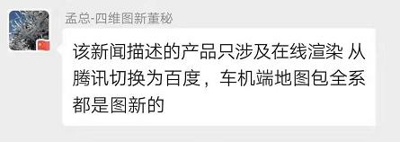 21世纪经济报道记者获悉,上述信息发布的当日,四维图新董秘孟庆昕在其某客户交流群中表示,特斯拉“官宣”中描述的产品仅涉及“在线渲染”,实际为从“腾讯切换为百度”,而车机端地图包全系仍由四维图新提供,并表示“对图新与特斯拉产品收入没有任何影响。”