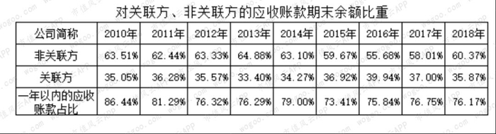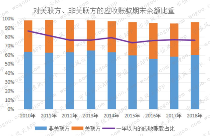 进一步分析发现,宝信软件的应收票据及应收账款中非关联方占比较大,基本在55%以上;在应收账款中1年以内的占比均在75%以上,见下图。