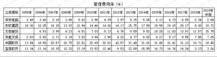 华东电脑和宝信软件的管理费用率非常低,2017年以来均没超过4%。说明两家公司的管理成本相对较低。
