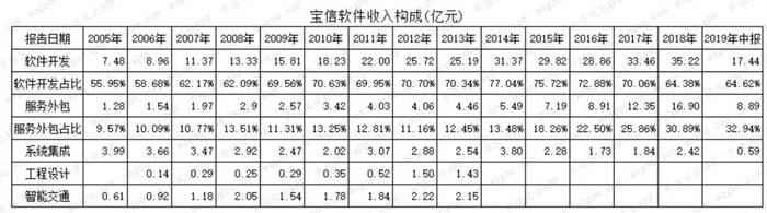 正如上文所言,最初宝信软件在软件开发服务上的收入主要来自宝钢体系;随着软件开发业务的增加,使得后期运维收入(服务外包)也在不断增加。
