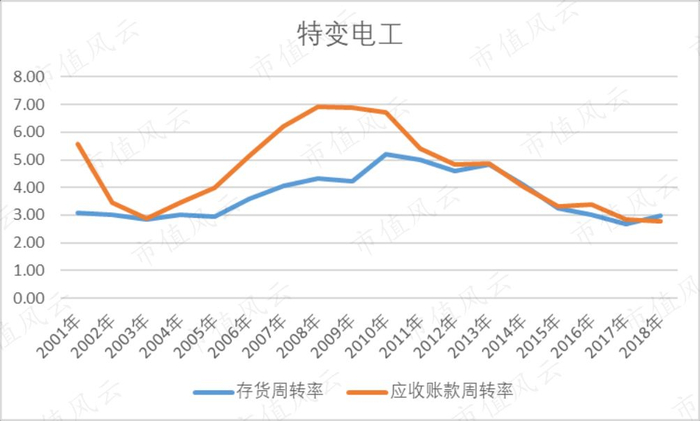 从增速上看,2001-2018年,应收账款的复合增长率为20.62%,存货的复合增长率为20.37%,接近同期营业收入22.21%的复合增长率。