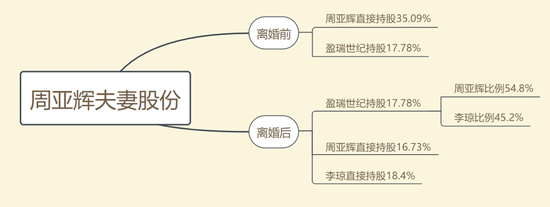 周亚辉一纸离婚书将近75亿元的股票资产分给了前妻,李琼分得18.4%的昆仑万维股票和盈瑞世纪45.2%的股权,盈瑞世纪的核心资产主要为昆仑万维17.78%的股权。