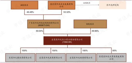 2018年7月东阳光发行股票收购了东阳光药后成为了其子公司完成了关联重组,从平行结构转化为套娃结构,当然最值钱的资产(东阳光研究院)还是放在表外。